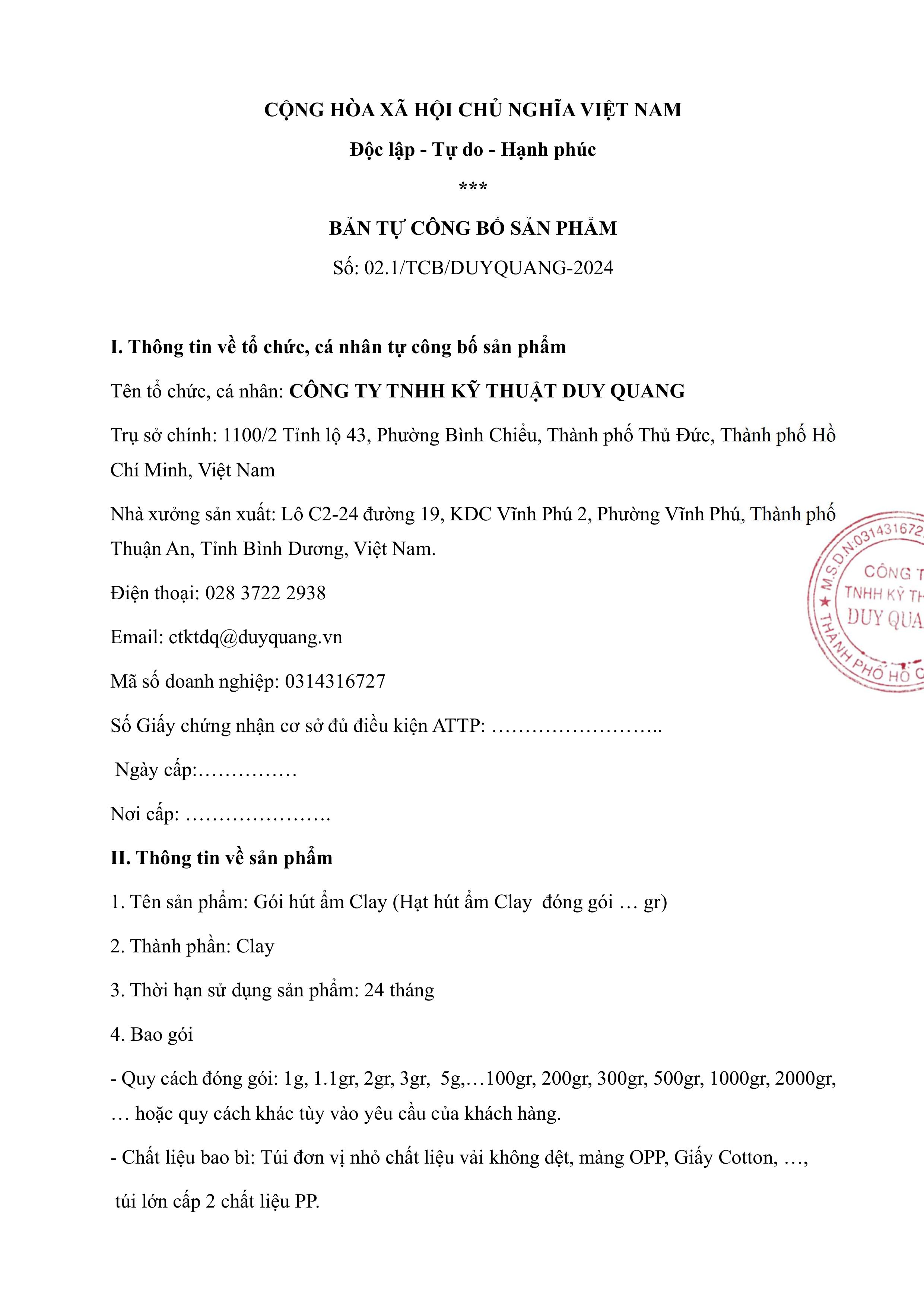 Công ty TNHH Kỹ Thuật DUY QUANG xin gởi lời chào đến Quý Khách Hàng/ Đối Tác đã quan tâm, sử dụng sản phẩm và dịch vụ túi hút ấm của Công ty chúng tôi.
