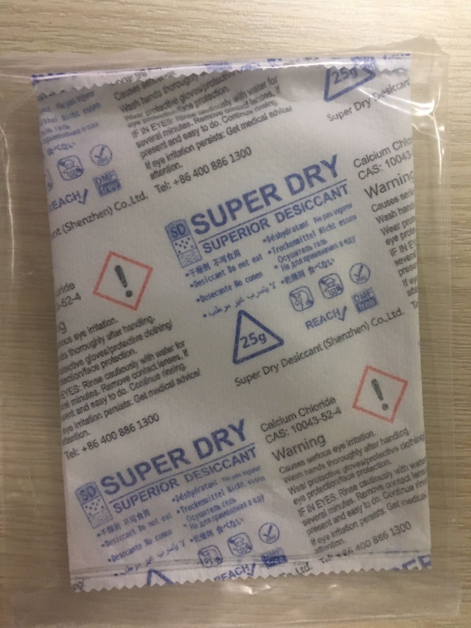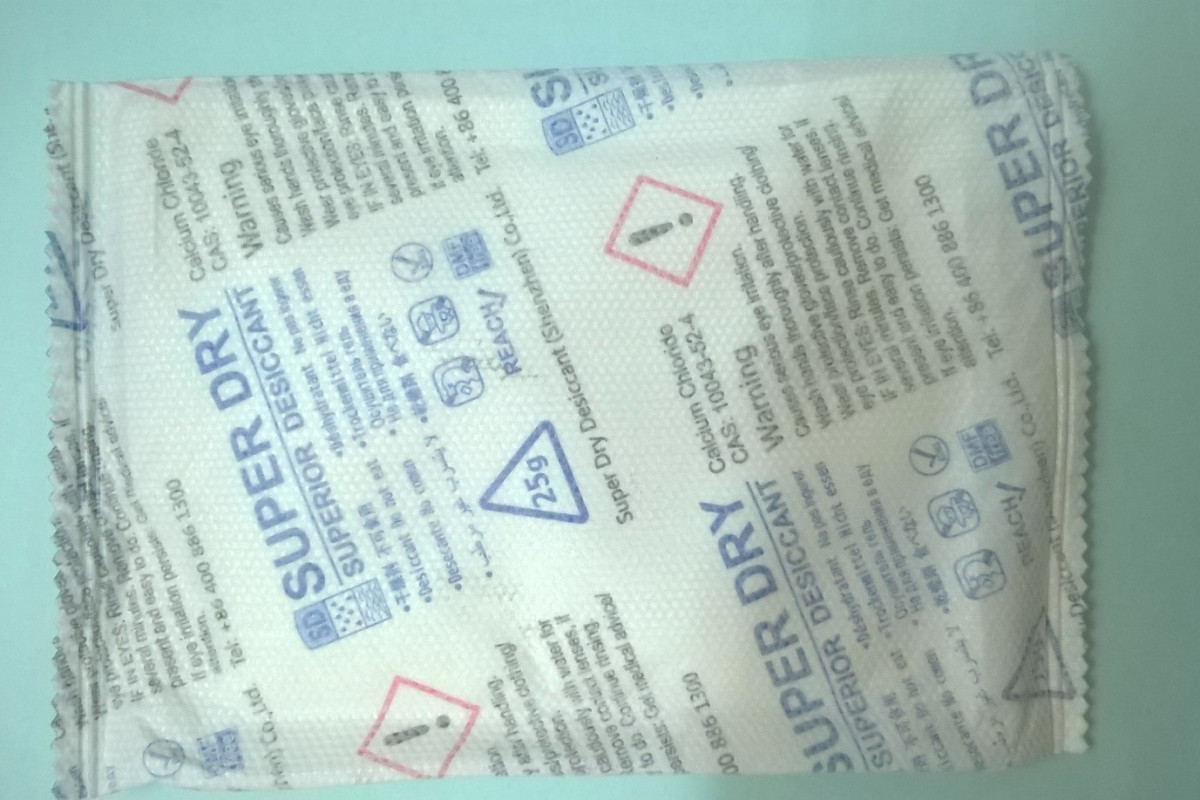 Gói hút ẩm superdry 25gram: Thường được sử dụng trong ngành may mặc, gói hút ẩm superdry 25 gram mang lại sự bảo quản tốt nhất cho các sản phẩm quần áo, thông thường với 1 thùng quần áo chúng ta chỉ cần sử dụng một gói bột hút ẩm superdry loại 25 gram này