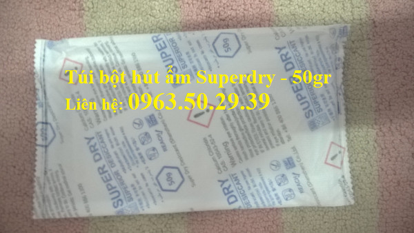 Gói hút ẩm superdry 50 gram: loại này phổ biến cho ngành gỗ, đồ nội thất và các sản phẩm hàng may mặc kích thước lớn, gói bột hút ẩm superdry 50gram là sự lựa chọn tối ưu cho những chuyến đi xa.