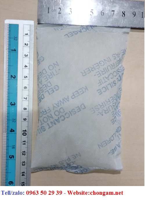 Gói chống ẩm silicagel được đóng gói bằng túi giấy lụa, phức hợp vải không dệt hèn mép chắc chắn nên không bị bung không ố vàng cho sản phẩm. Đối với các gói chống ẩm silicagel có trọng lượng từ 500g, 1kg, 2kg sẽ được gắn móc treo tiện dụng khi treo lên thành container, tủ rượu, tủ bếp